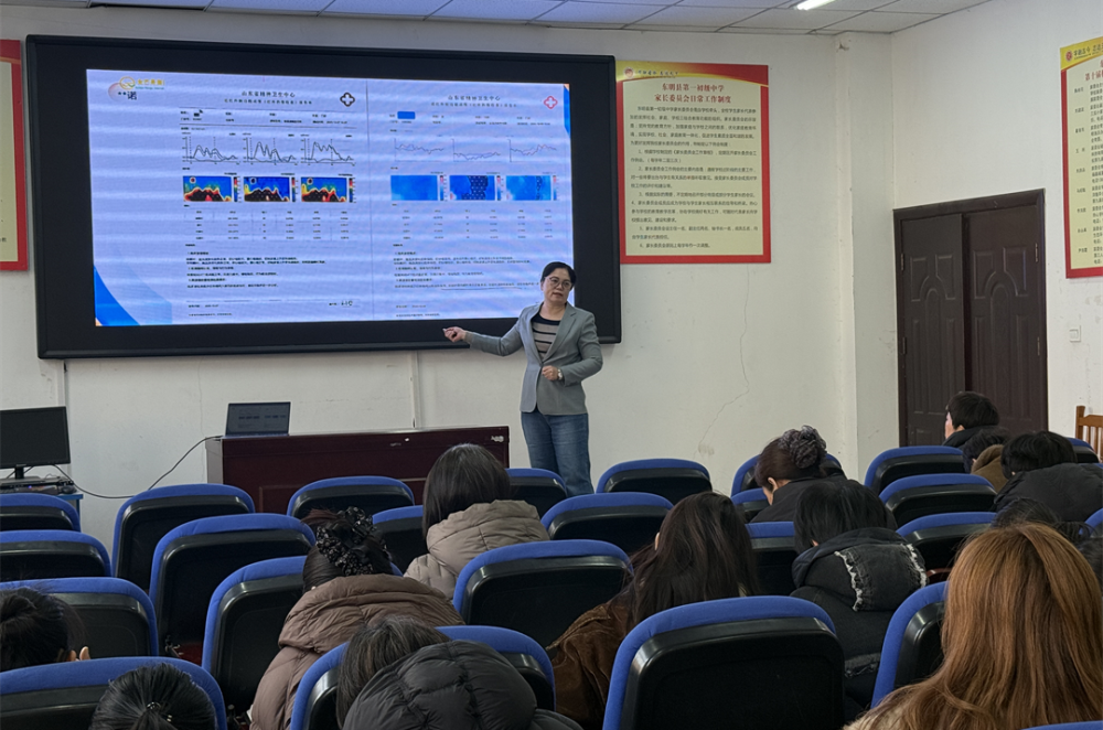 讲座伊始,孙明君老师结合金芒果教育在东明县开展的中小学生心理健康筛查数据,向班主任以及家长们展示了当前学生心理健康的现状以及面临的挑战。
