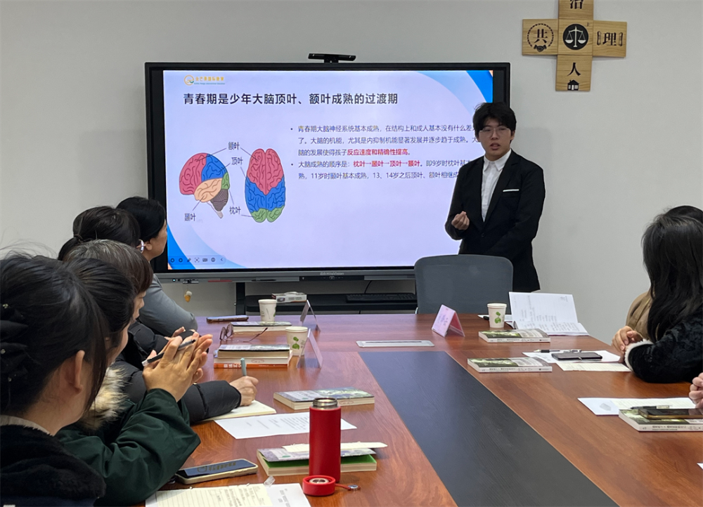 其次,张育尘老师从脑科学与健康角度,生动讲解了中小学生大脑各功能区发育特点及其与学业、情绪的关系。通过图解与实例,家长们了解到额叶、顶叶、颞叶、枕叶在不同年龄段的成熟顺序及其功能,明白了孩子“情绪易冲动”“注意力不集中”背后的生理原因,也学会了如何通过科学方法支持孩子提升记忆、理解与规划能力。