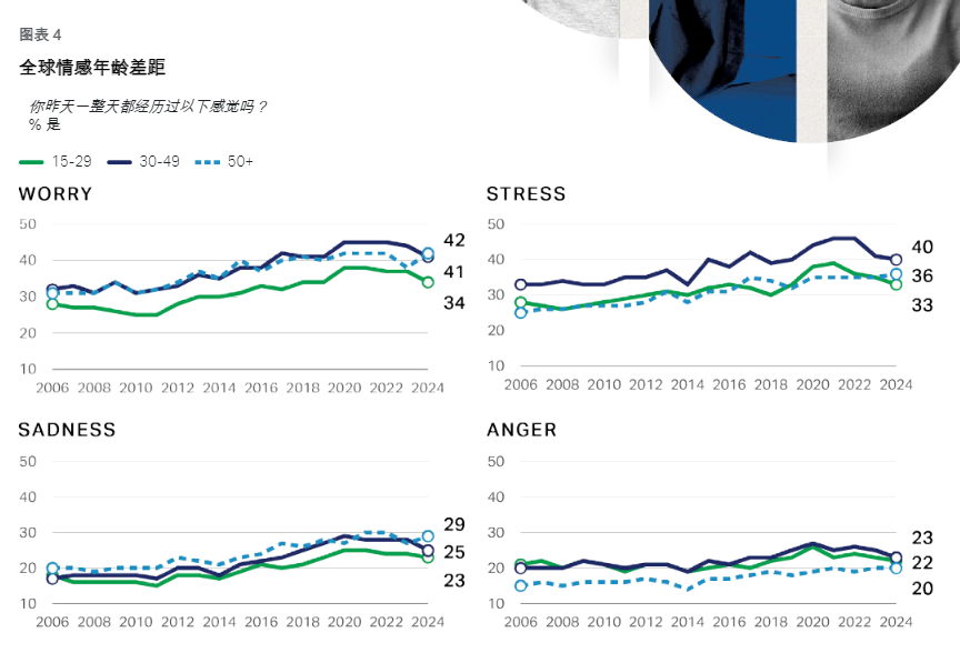 最新发布的《2025世界情绪健康报告》,为这种普遍的感受提供了有力的数据支撑。这份由盖洛普与世界卫生峰会耗时近二十年、覆盖144个国家、访谈近15万人得出的报告,揭示了一个发人深省的现象:人类正步入负面情绪基线整体抬高的时代。