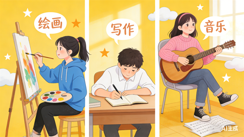 ✨ 输出型爱好:比如绘画、写作、做手工、演讲、音乐创作……它们的核心是主动创造、主动表达。